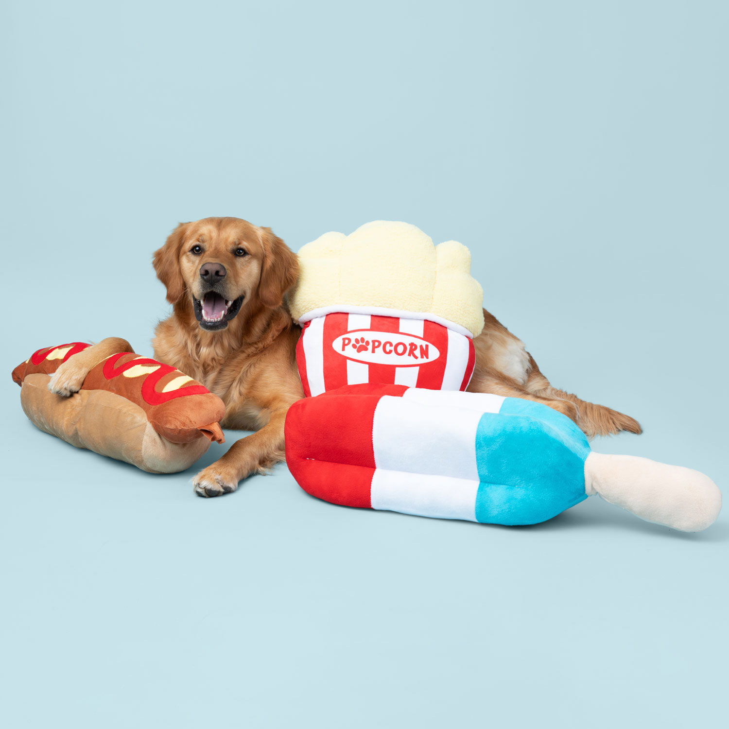 Our Mega Plush Hot Dog is made for dogs who dream BIG. Our Gnawsome™ Mega Plush Hot Dog is built for endless entertainment, cuddling, and Instagram-worthy photo ops! Perfect for tossing, chewing, or cuddling! Includes fun squeakers and crinkle paper for sensory fun!