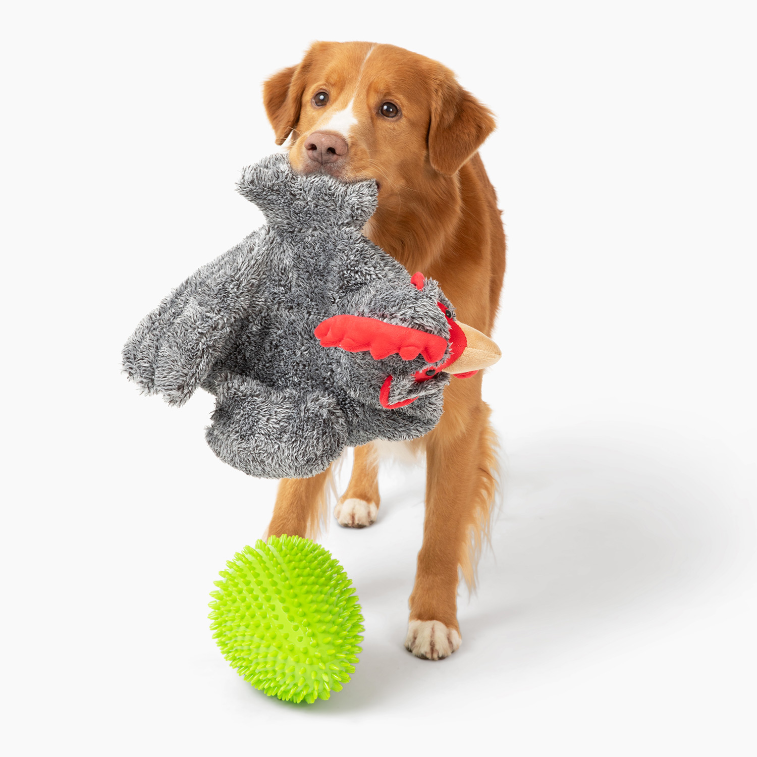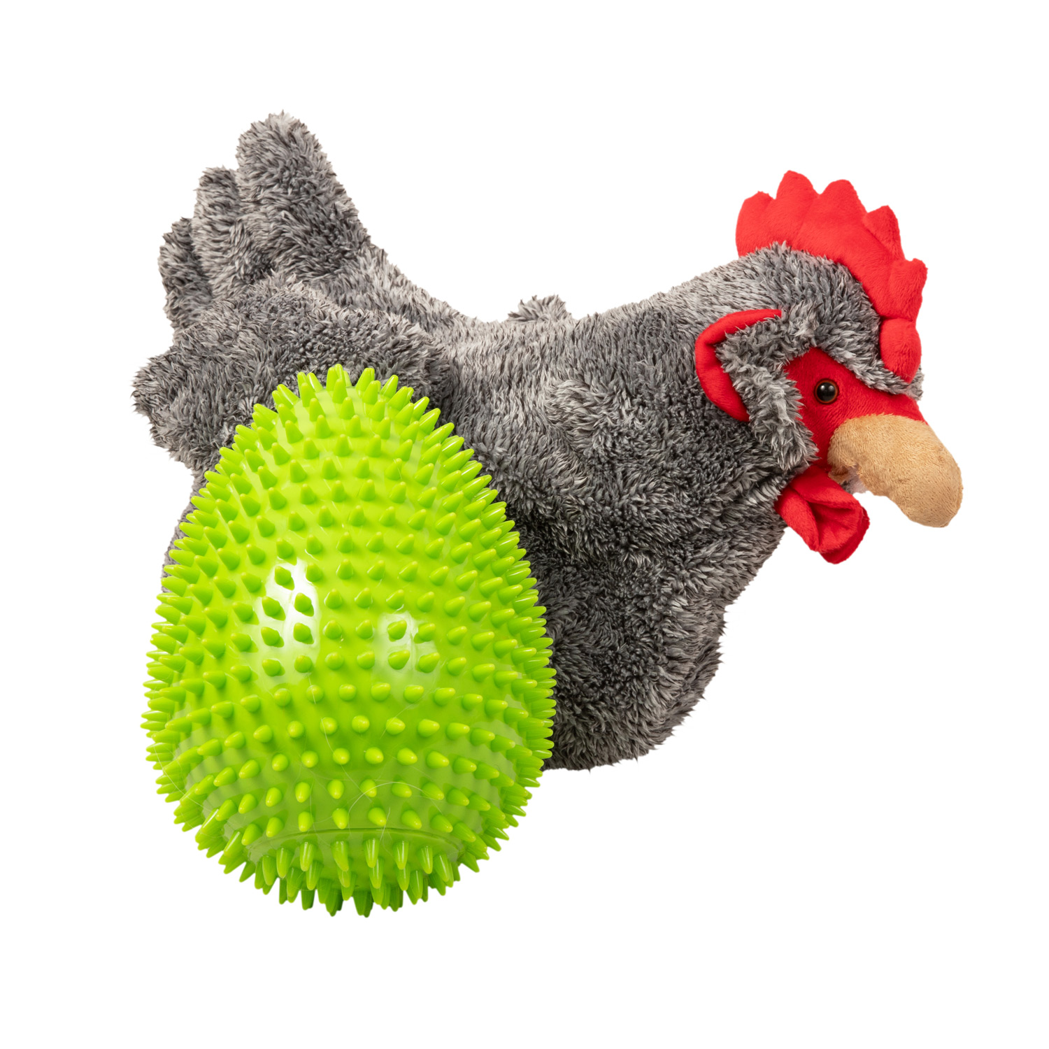 • Two-in-one toy features a plush chicken and a spiky egg for double the fun